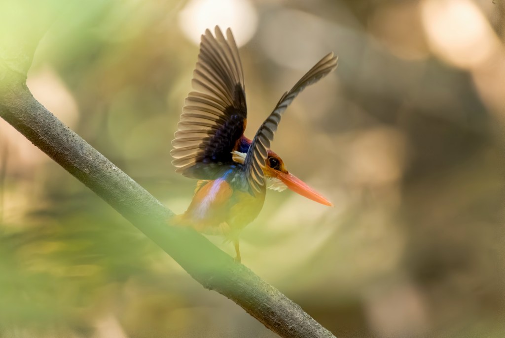 Late Summer (May) The forest feels quieter, and overall activity at the hide drops. However, this is when species like the Greater Racket-tailed Drongo become more prominent. Even with fewer birds, the experience remains unique due to the atmosphere and occasional surprises.