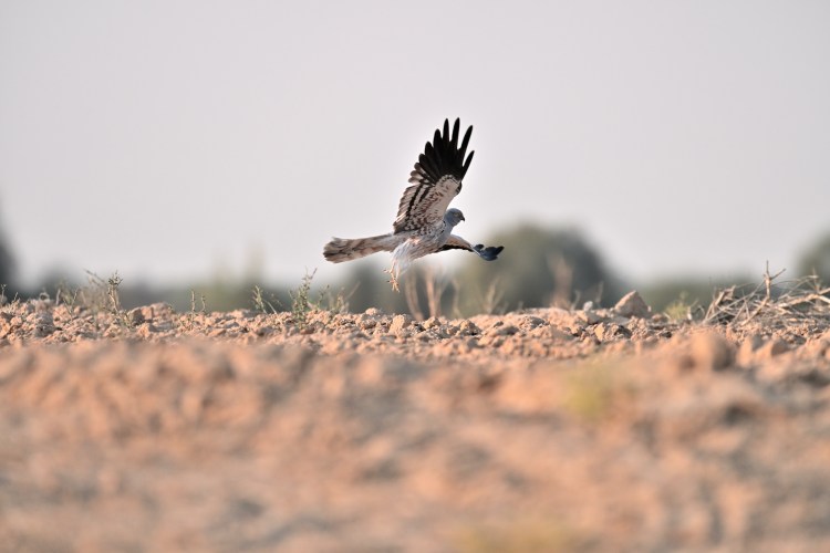 After a great morning session, we headed back on safari to another part of Desert National Park in search of the rare and critically endangered White-rumped Vulture, along with the Himalayan Griffon Vulture and Indian Vulture. As we approached the area, we suddenly saw a large flock of vultures lifting off from the ground. At first, we assumed they would return, but later we learned that some people had removed the carcass of a dead animal from the site, likely for its skin. This disturbance caused the entire flock to disperse, and unfortunately, we missed the opportunity to photograph the vultures.