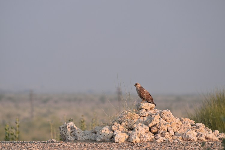 On the second day, we explored another part of the Desert National Park area. We witnessed many raptors that day, including the mighty Cinereous Vulture, Egyptian Vulture, and Red-headed Vulture, all seen together at the same place perched on the ground. As the light became very harsh, we concluded our morning session and planned to return in the evening.